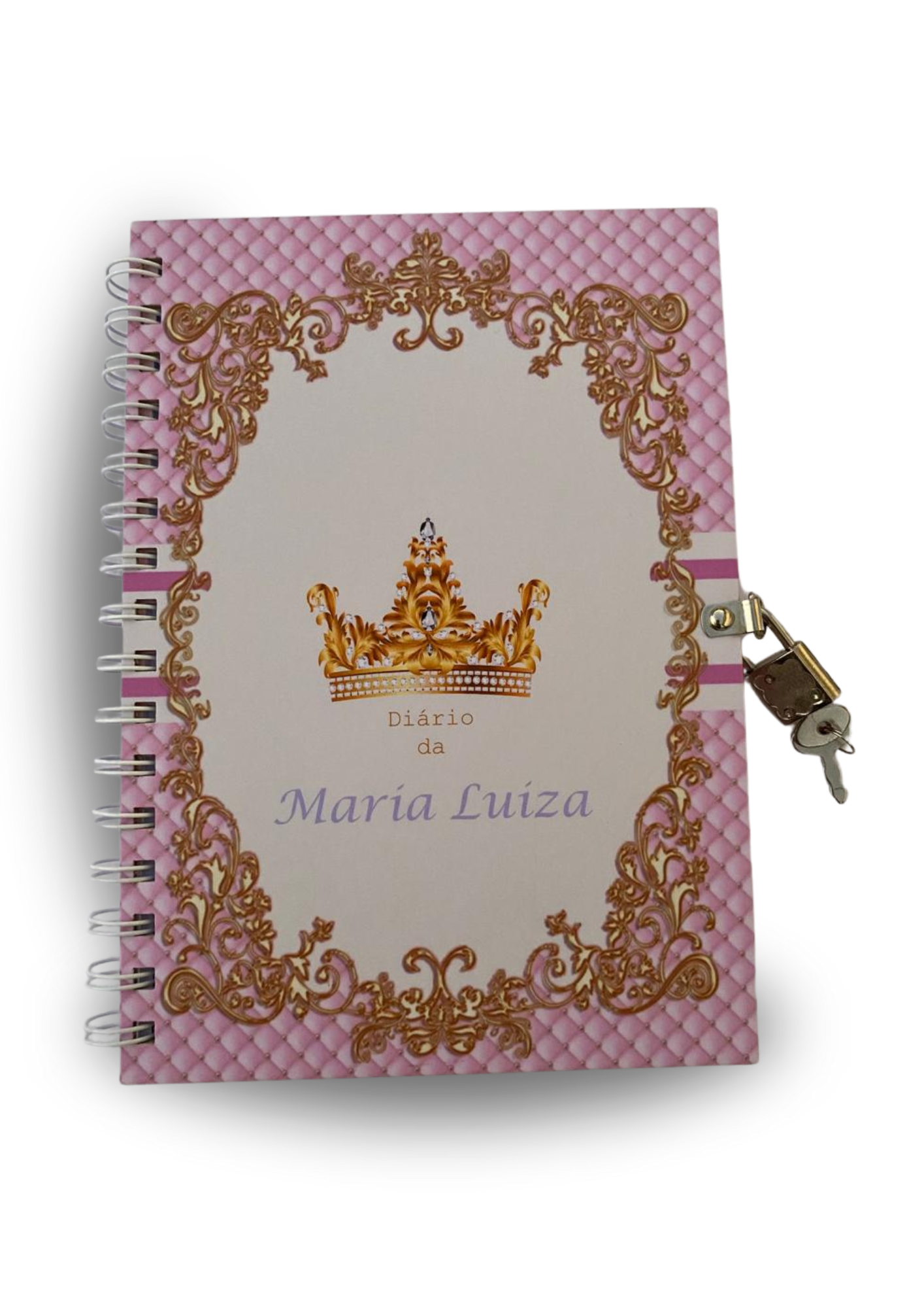 Em capa dura, laminada para maior durabilidade do produto, com espiral estilo wire-o, miolo pautado e decorado,com 80 folhas em papel offset 90g, acompanha cadeado com 2 chaves para o fechamento,